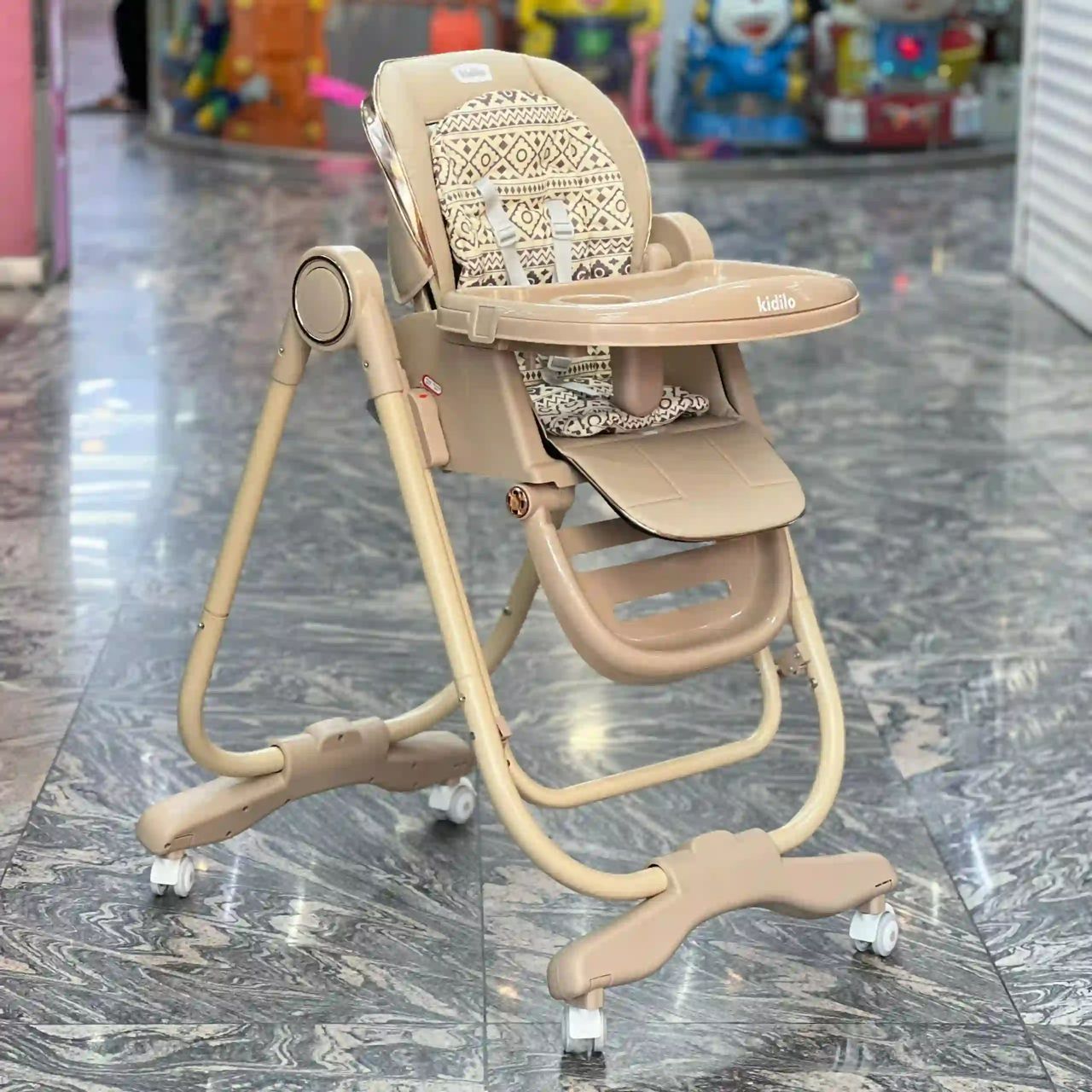 صندلی غذا تاپ شو دستی کیدیلو به همراه تشک دوبل قابلیت استفاده از ۶ ماه به بالا داری چهار جرخ ترمز دا قبل از خرید برای استعلام قیمت تماس بگیرید